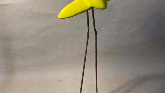SWELL Smalls Gallery 2023 Artwork – Canary II In an era of uncertain possibilities, we embrace the fusion of unexplored realms and turn to technology to steer us and reshape the precarious course we have forged. In the past, we sought guidance from nature to anticipate what lies ahead. Canary II playfully explores human fallibility and