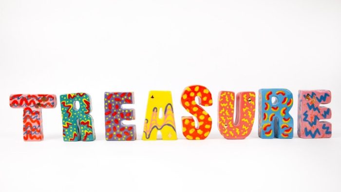 SWELL Smalls Gallery 2023 Artwork – TREASURE The word TREASURE stands upon a plinth and cheekily proclaims its own value. However, the abstract nature of text makes us question if the treasure is the object itself, the environment it sits in, or the audience’s projection of meaning. Click here to find out more about the artists