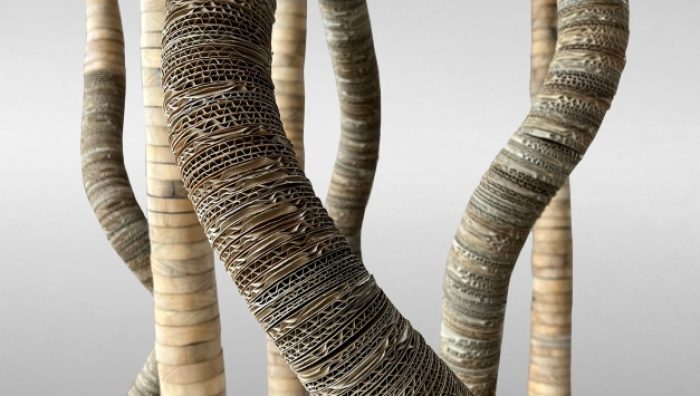 SWELL Smalls Gallery 2023 Artwork – Mini Dance The materials in this work have had many incarnations from plantation timber, pallet timber and cardboard packaging to artwork. Use and re-use goes only so far until its current form can no longer function as intended, then it can be recycled. Small contributions by each of us